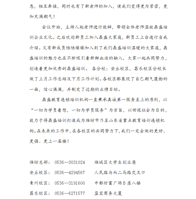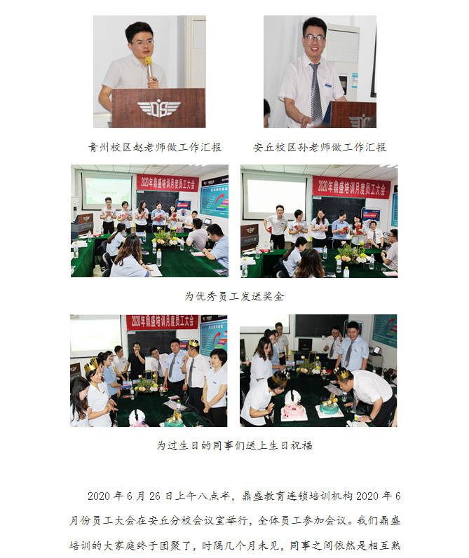鼎盛培训2020年度5-6月份员工大会暨表彰大会圆满结束啦!