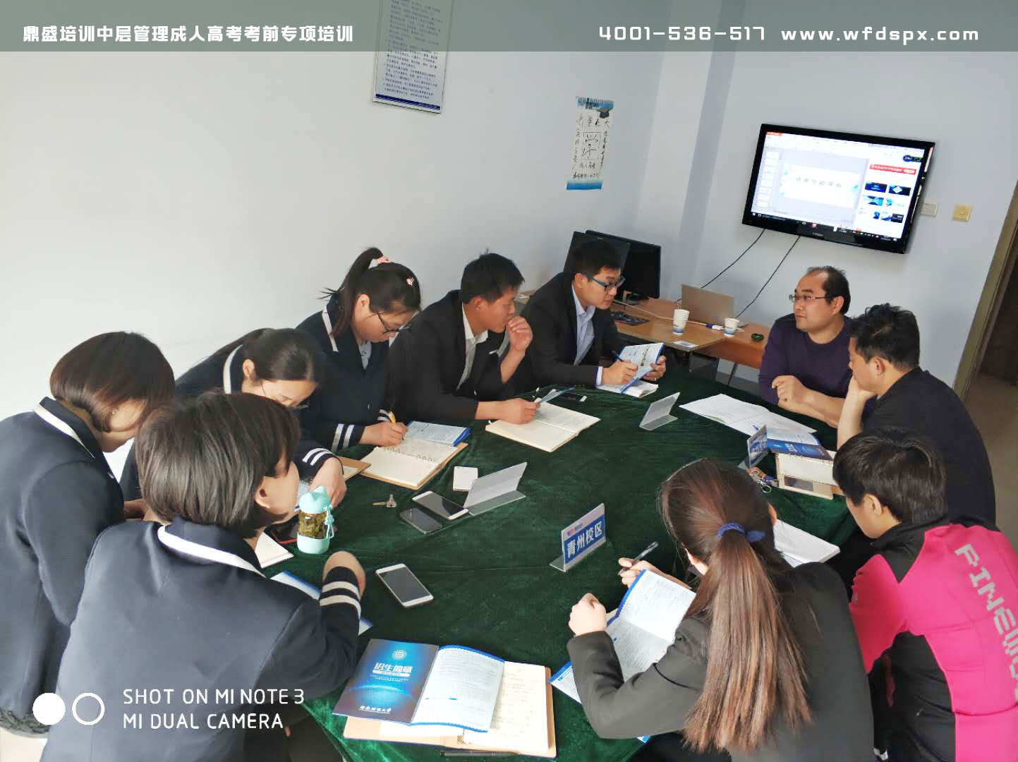 下午召开鼎盛培训继续教育专题会议,我们有幸邀请到了潍坊市网教中心的刘老师,为大家进行继续教育专题培训。继续教育主要分为自考、成人高考、远程教育三种,而我们鼎盛培训主要针对成人高考、远程教育中的高起专、专升本,这两种全部都是国家承认的学历,学信网可查询学籍信息。2018年成人高考的主要招生院校有青岛科技大学、北华大学、青岛理工大学、青岛广播电视大学、大连大学、山东科技大学、燕山大学、山东农业大学、四川师范大学、齐鲁医药学院、潍坊医学院、齐鲁师范学院、山东交通学院、山东农业工程学院、山东管理学院、山东力明科技职业学院、淄博职业学院、山东铝业职业学院、湖南航空工业职工工学院、益阳教育学院等国家重点院校。2018年现代远程教育主要招生院校有西安电子科技大学、西南财经大学、陕西师范大学、江南大学、东北大学等国家重点院校。